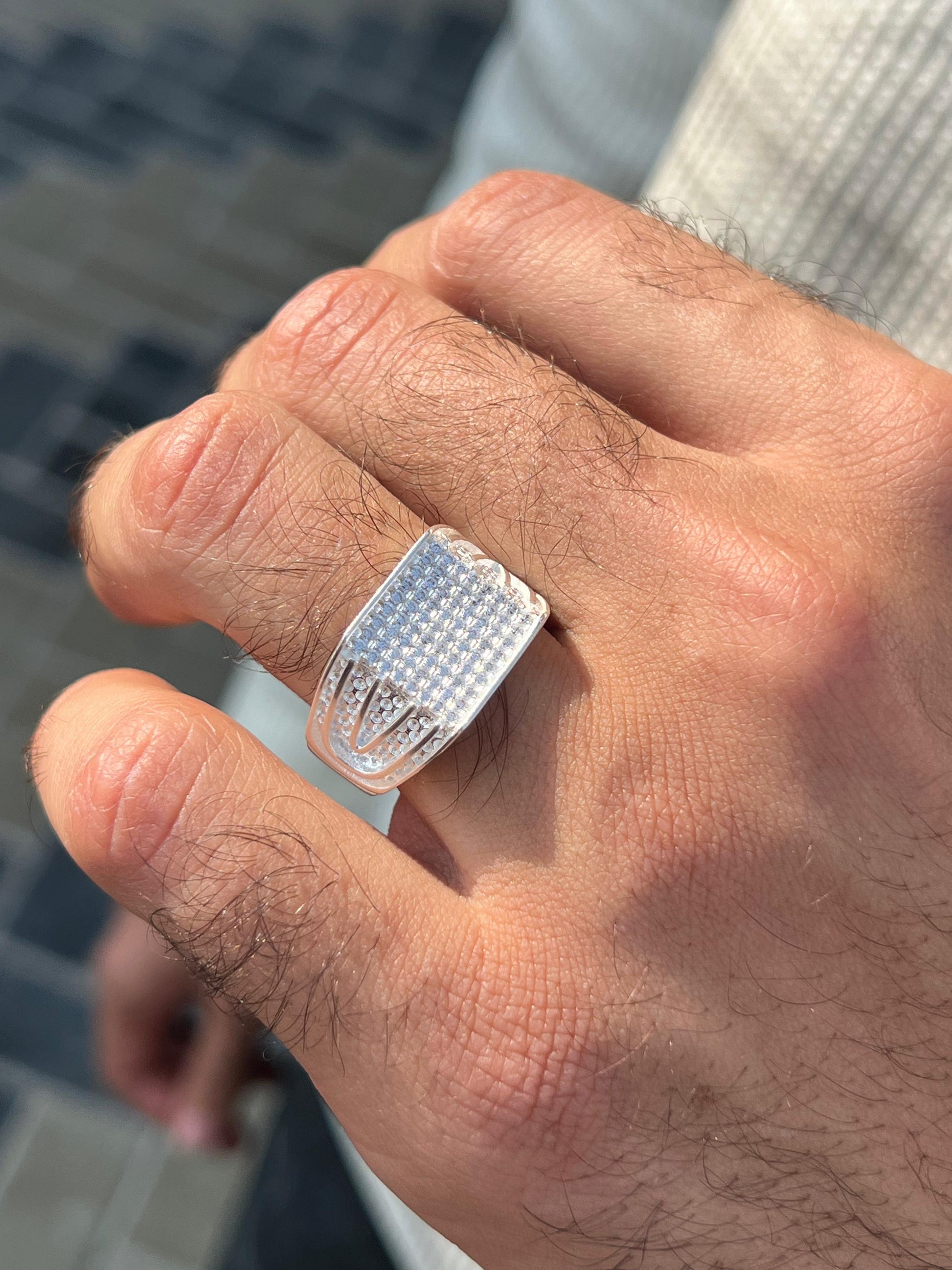 Cubic Iced Diamond Zirconia Ring for Men in Sterling Silver 925s