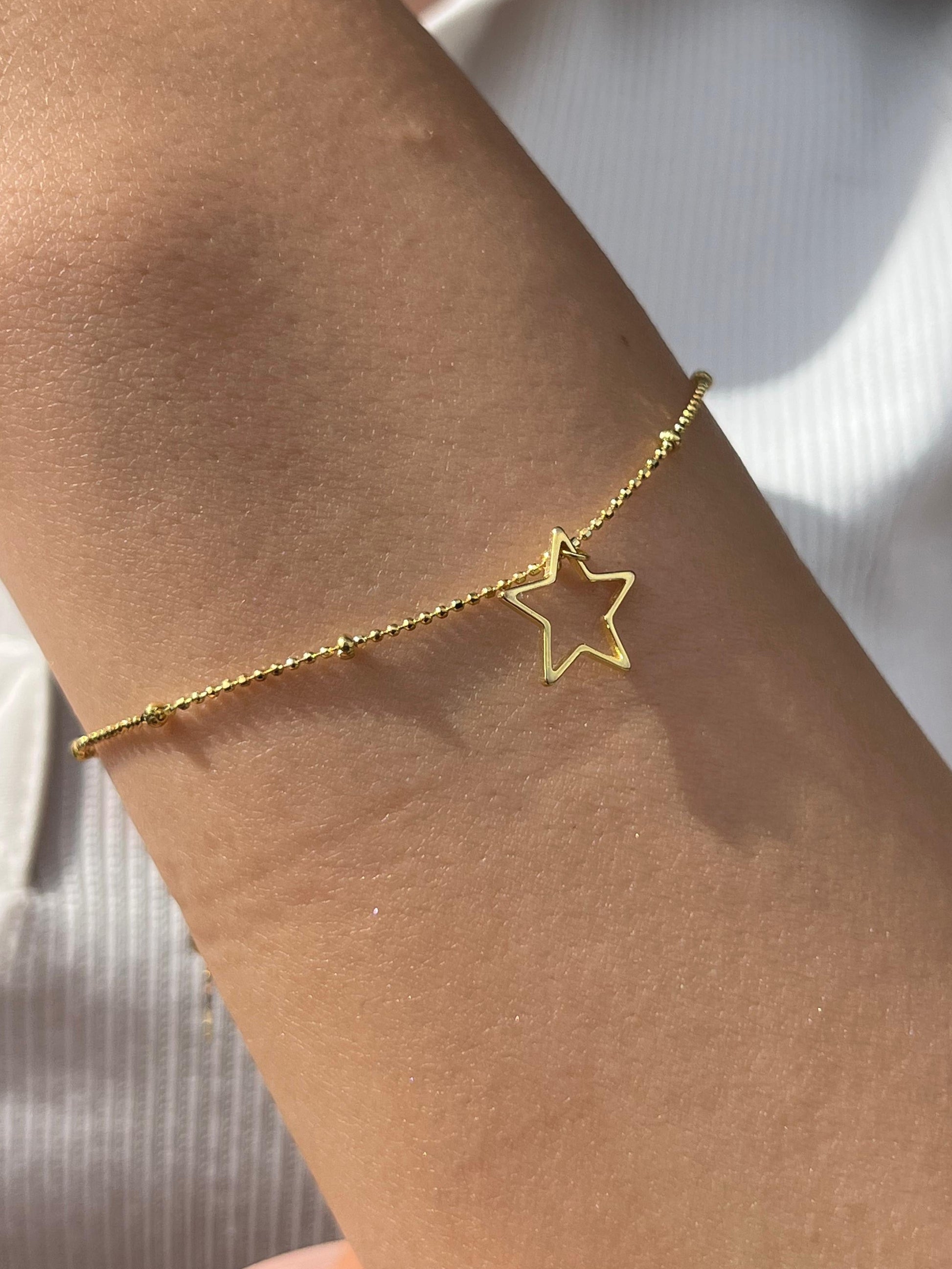 Gold plated Hallow Star Bracelet -in Sterling Silver -925