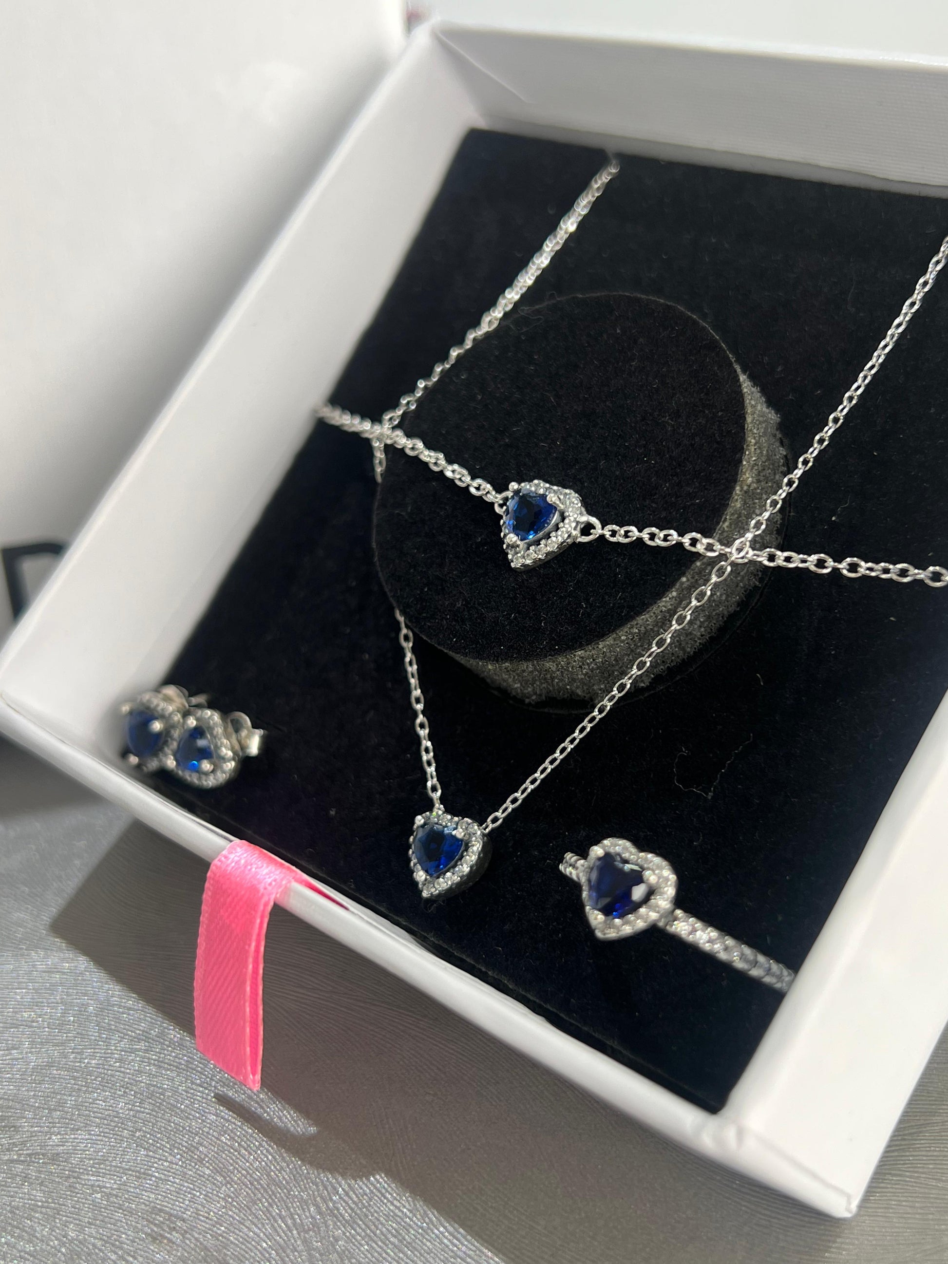 Made from premium sterling Italian silver 925 and stamped, the set includes a dazzling ring, necklace, and earrings.
