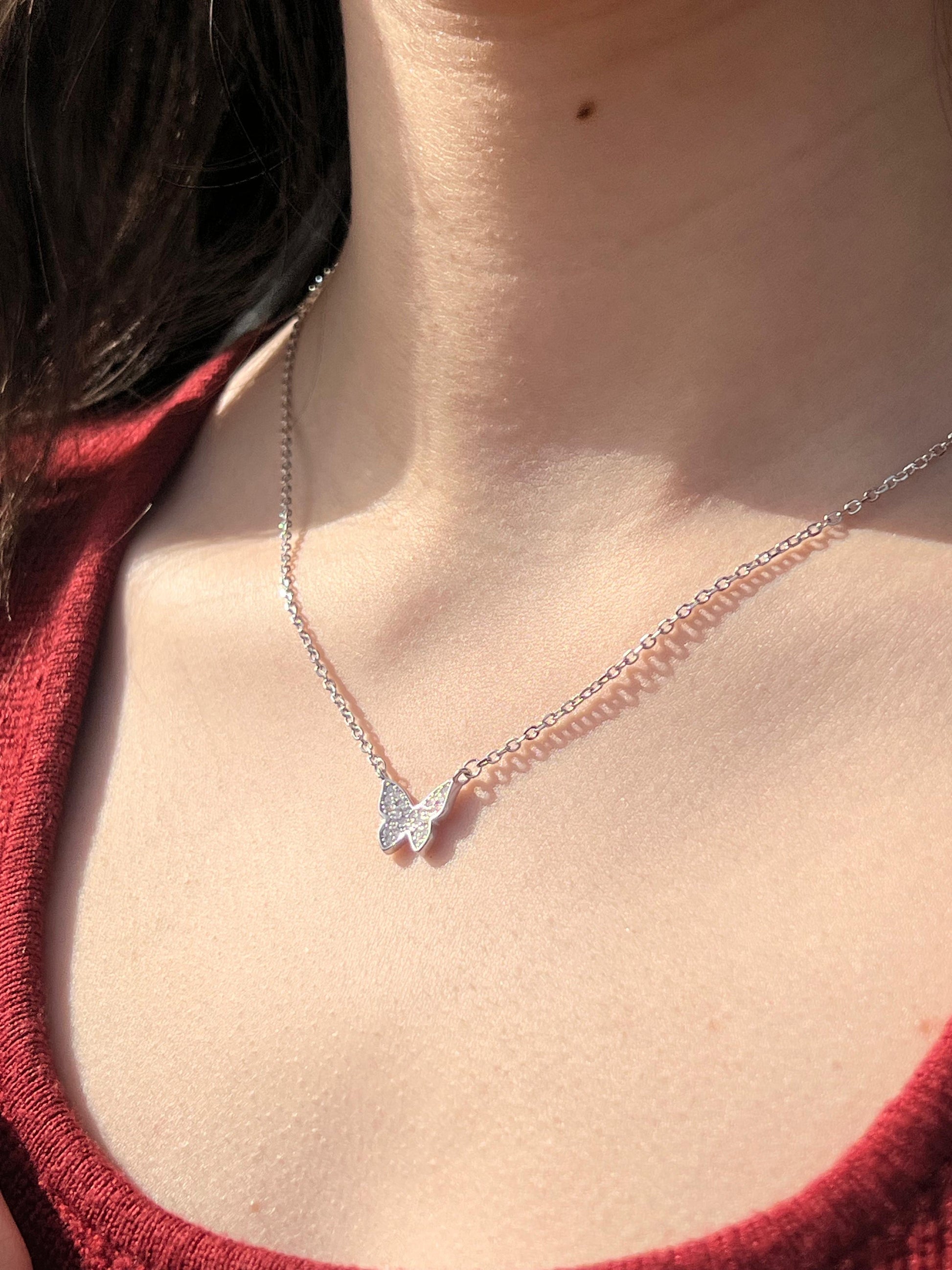 Sparkling butterfly Necklace-in Sterling Silver -925